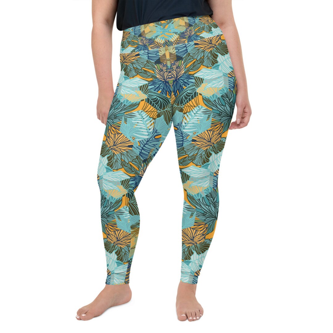 Palm Leaf Leggings For Women Green High Waist Plus Size Etsy