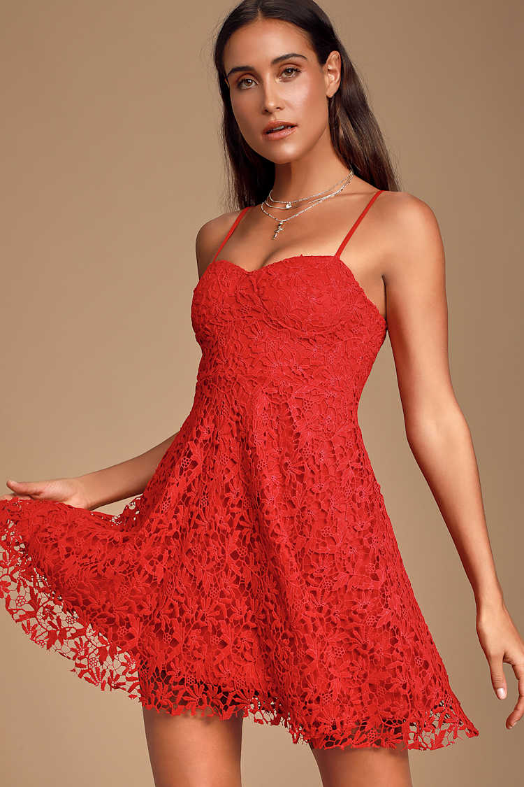 Sexy Red Lace Dress Red Skater Dress Lace Bustier Dress Lulus